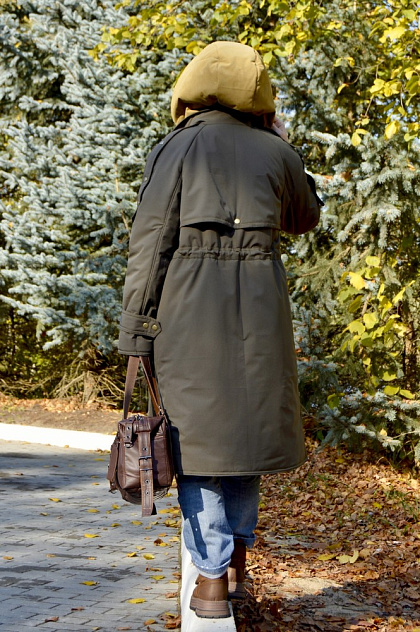 - Воротник. На детали верхнего воротника восстановить стежку, закрепить утеплитель по контуру детали. Обтачать воротник по отлету и концам, вывернуть, выправить, приутюжить. Проложить две параллельные отделочные строчки. Детали стойки сложить лицевыми сторонами внутрь, расположив между ними воротник, стачать. Обтачать короткие срезы стойки. Высечь припуск в углах, вывернуть, выправить, приутюжить стойку.
